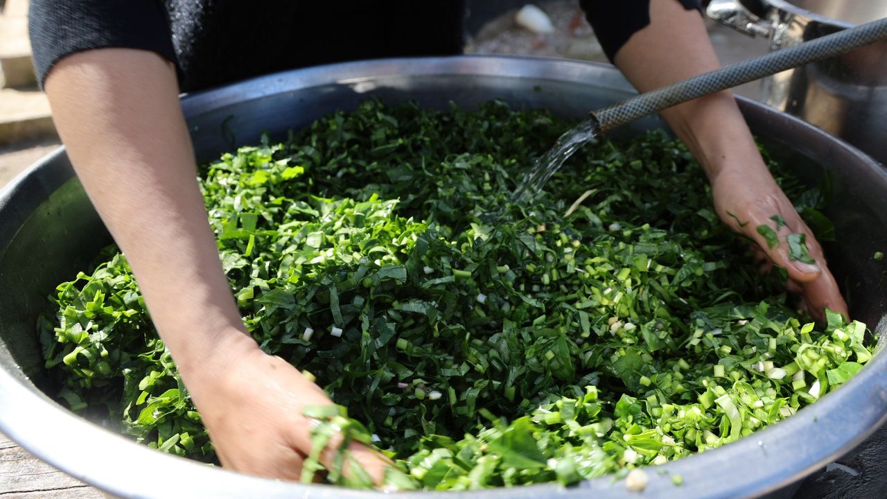 Adana'nın Kozan ilçesinde kadınlar, iftar sofraları için bahçelerden topladıkları yılan pancarı otunu imece usulü hazırlıyor. İncecik doğranan ot; yoğurt, nohut, yarma ve limonla karıştırılıp üzeri unla kapatılarak 24 saat bekletiliyor. Zehri alınan ot, ardından odun ateşinde kara kazanda yaklaşık 4 saat pişirilerek sofralarda yerini alıyor.