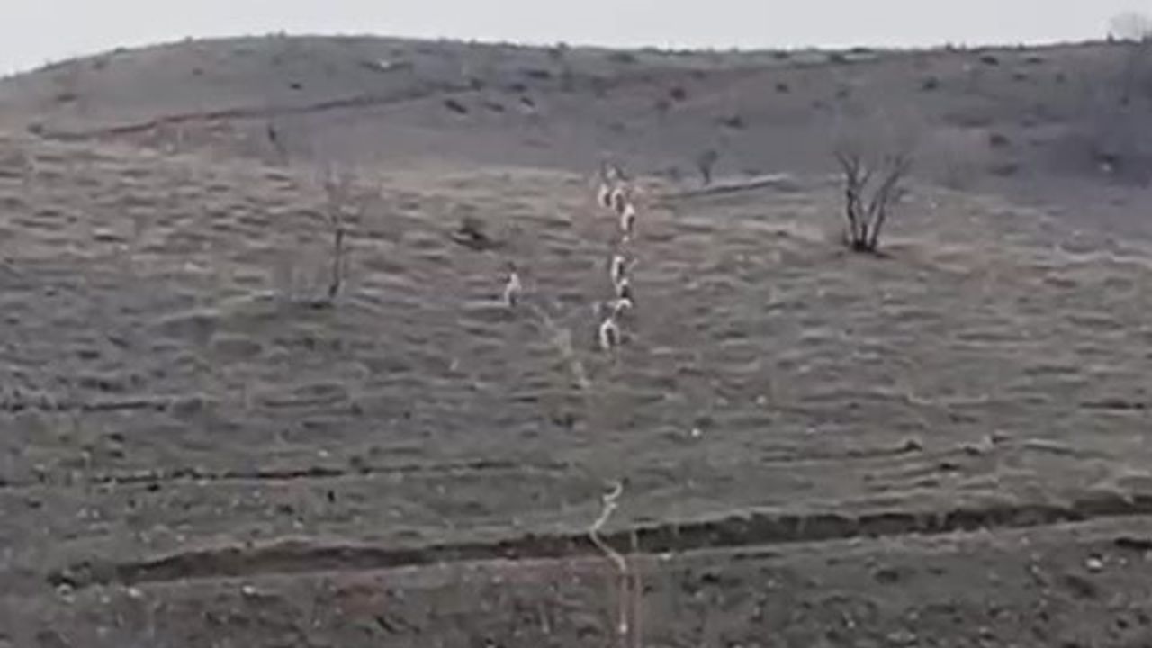Bir süre çevreyi dikkatle gözetleyen dağ keçileri, daha sonra yamaçlardan aşağı inerek gözden kayboldu.