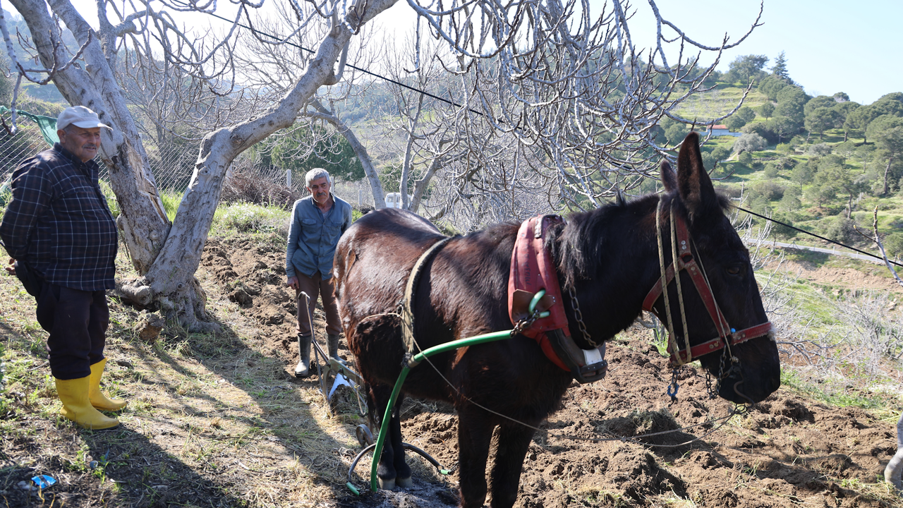 66 yaşındaki üretici Musa Küçük, köyde genç nüfusun kalmadığını belirterek, tarımın artık yaşlıların omzunda yürüdüğünü söyledi. Katırla toprağını işleyen Küçük, özellikle incir ve asma diplerinde modern makinelerin yetersiz kaldığını ifade etti.