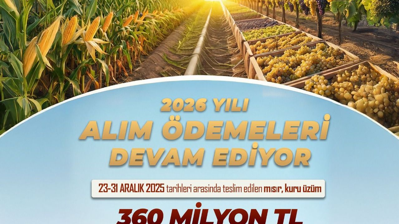 TMO tarafından yapılan açıklamaya göre, 23-31 Aralık 2025 tarihleri arasında teslim edilen mısır ve kuru üzüm ürünleri için toplam 360 milyon TL ödeme gerçekleştirildi. Ürün bedelleri bugün itibarıyla üreticilerin banka hesaplarına aktarıldı.